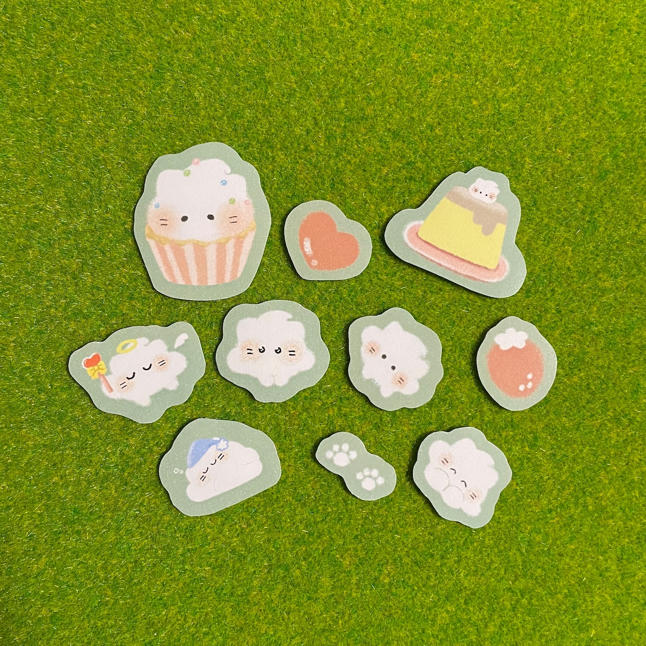 猫の耳のようなツノが特徴のホイップクリームの妖精「ほいっぷくりーにゃ」のシール10枚入りセットです。